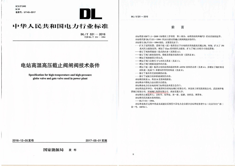 DL∕T-531-2016《电站高温高压截止阀闸阀技术条件》