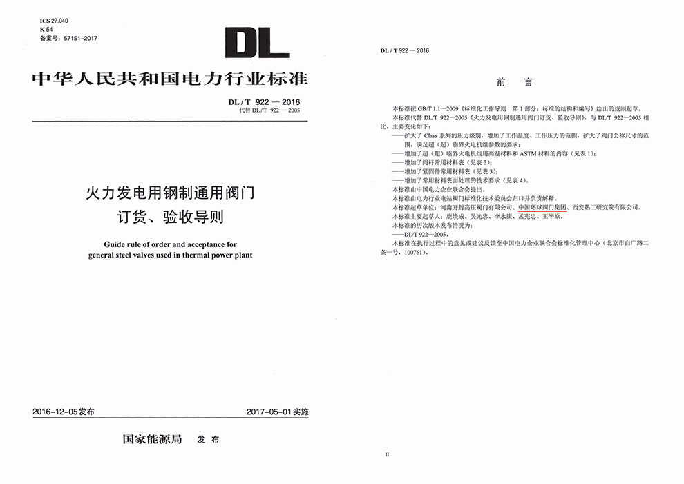 DL∕T-922-2016--火力发电用钢制通用阀门订货、验收导则