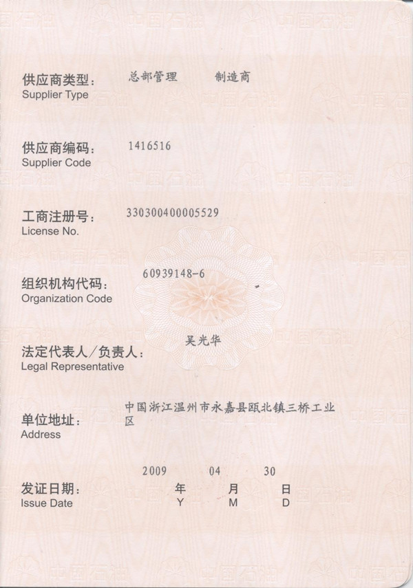 中国石油天然气集团公司物资供应商准入证4