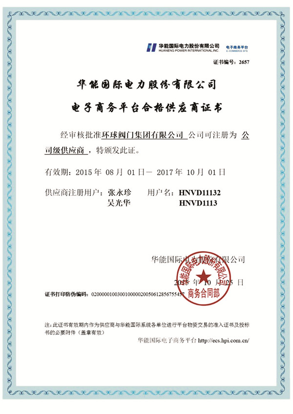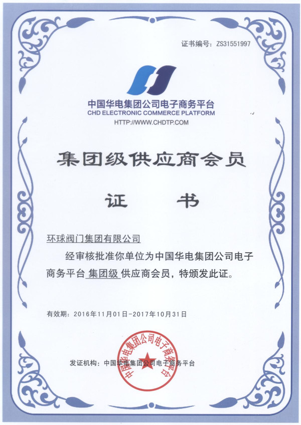 中国华电集团供应商会员证书