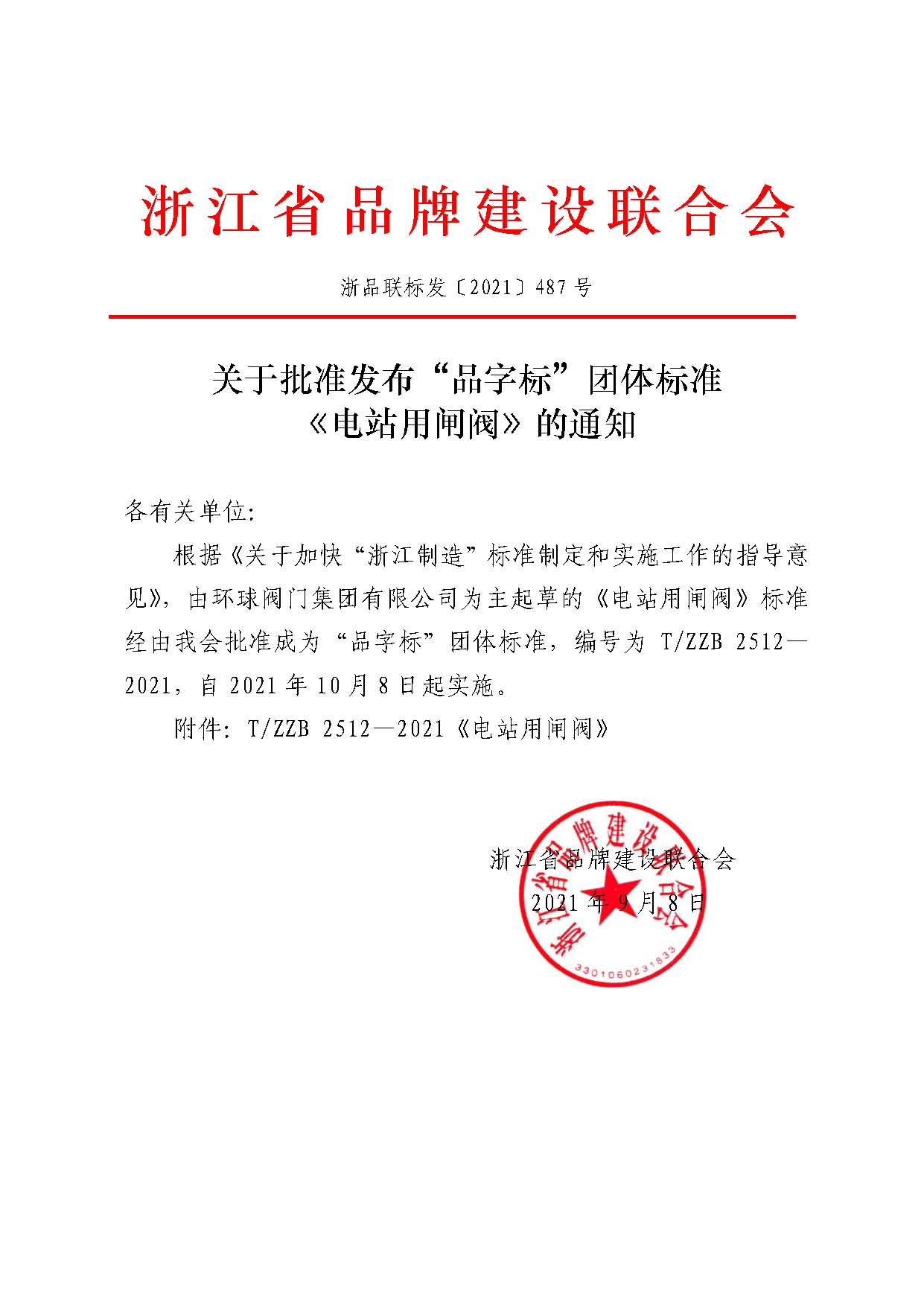 《电站用闸阀》浙江制造“品字标”团体标准