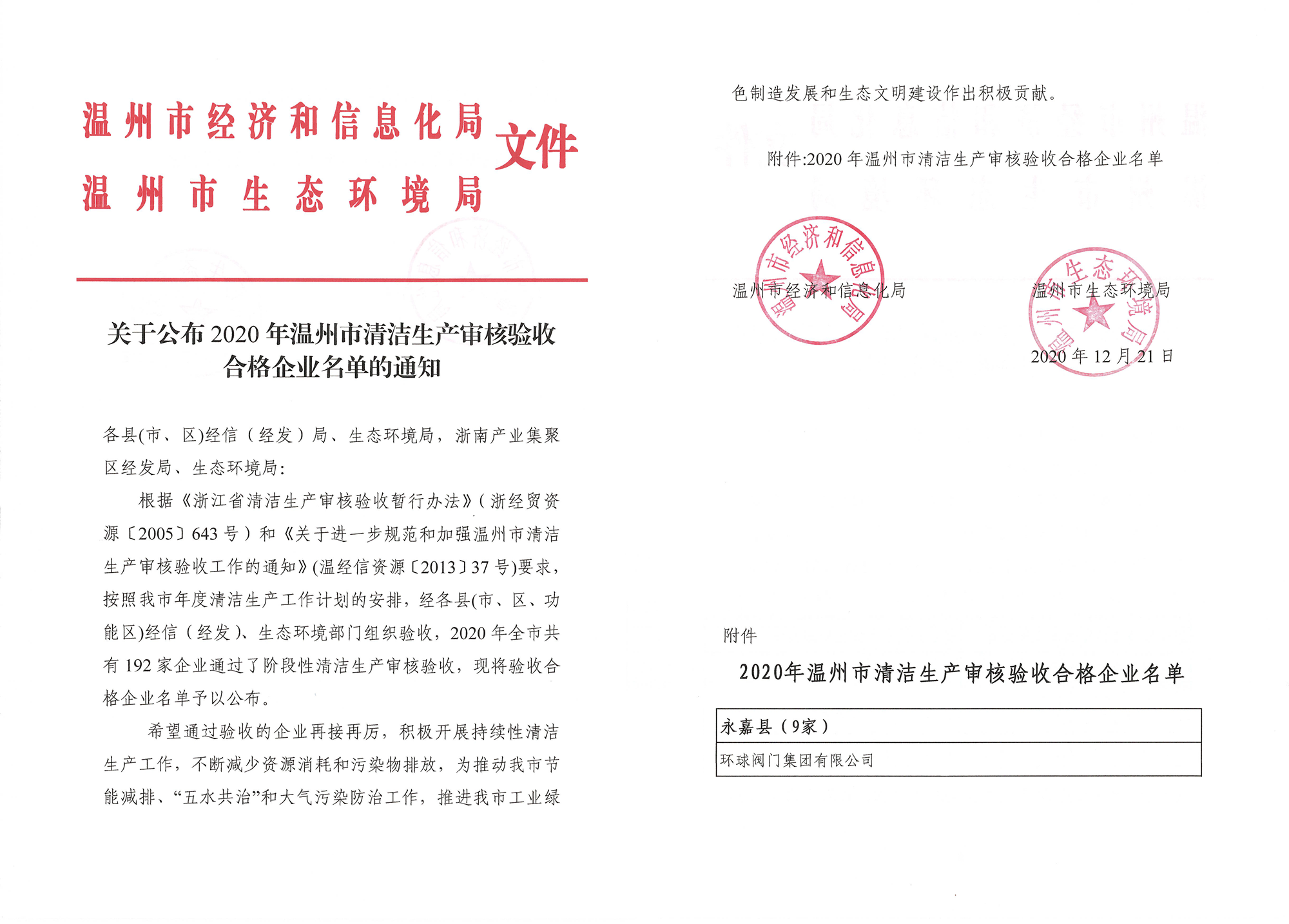 2020温州市清洁生产合格企业