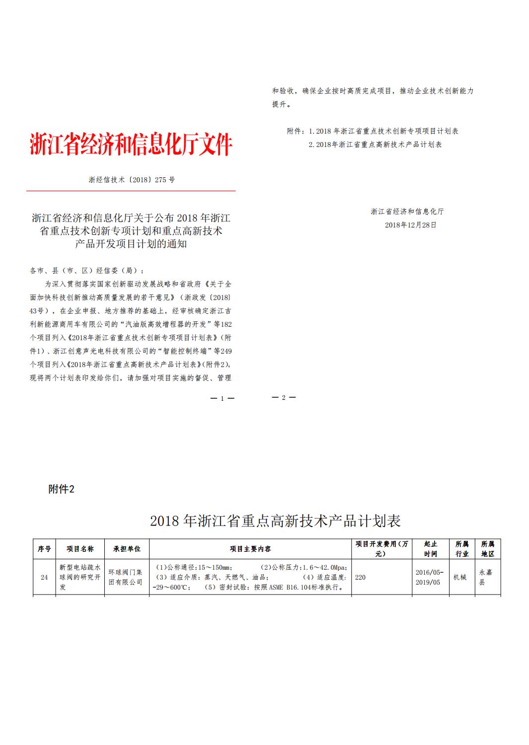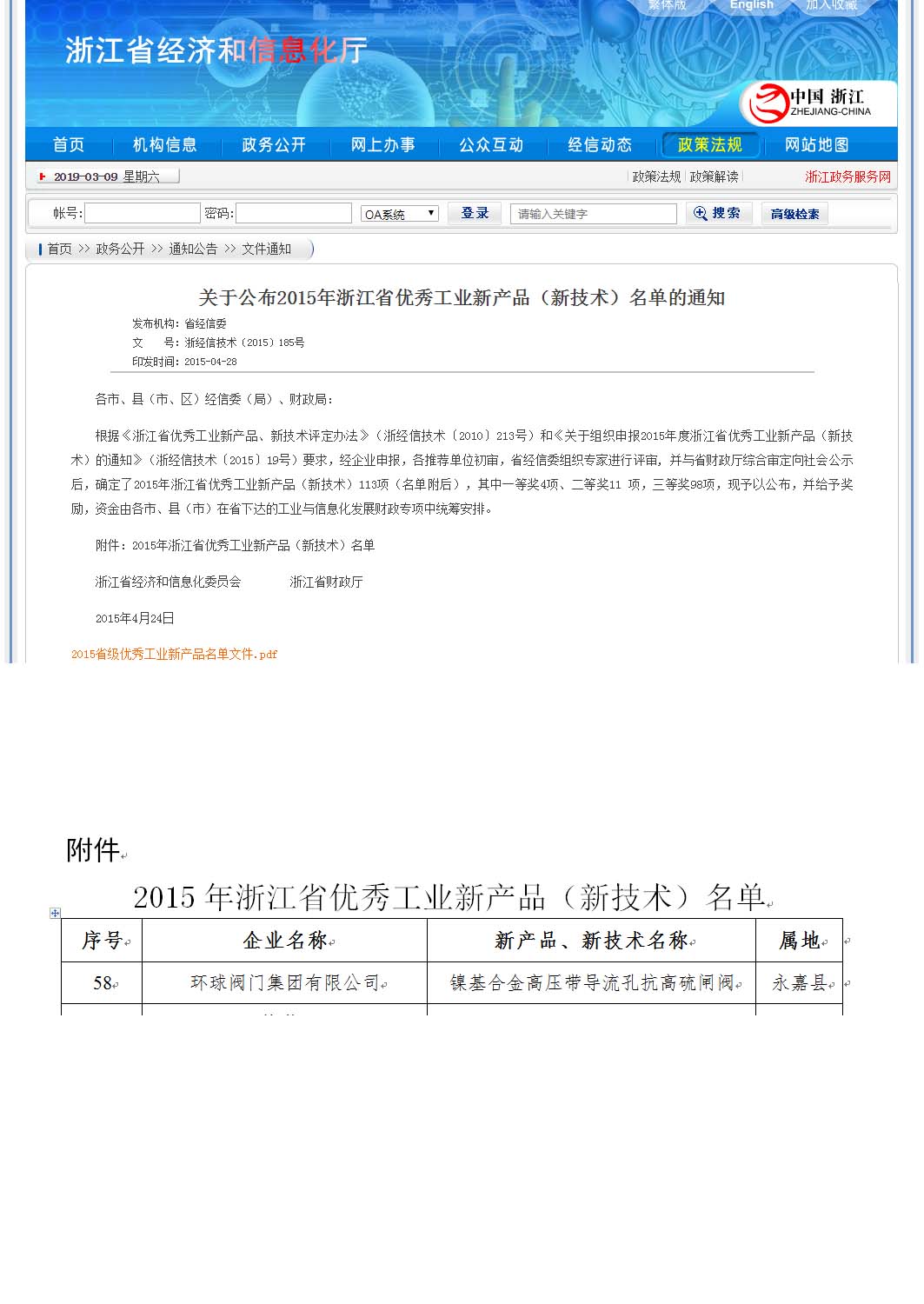 2015年浙江省优秀工业新产品(镍基合金高压带导流孔抗高硫闸阀)