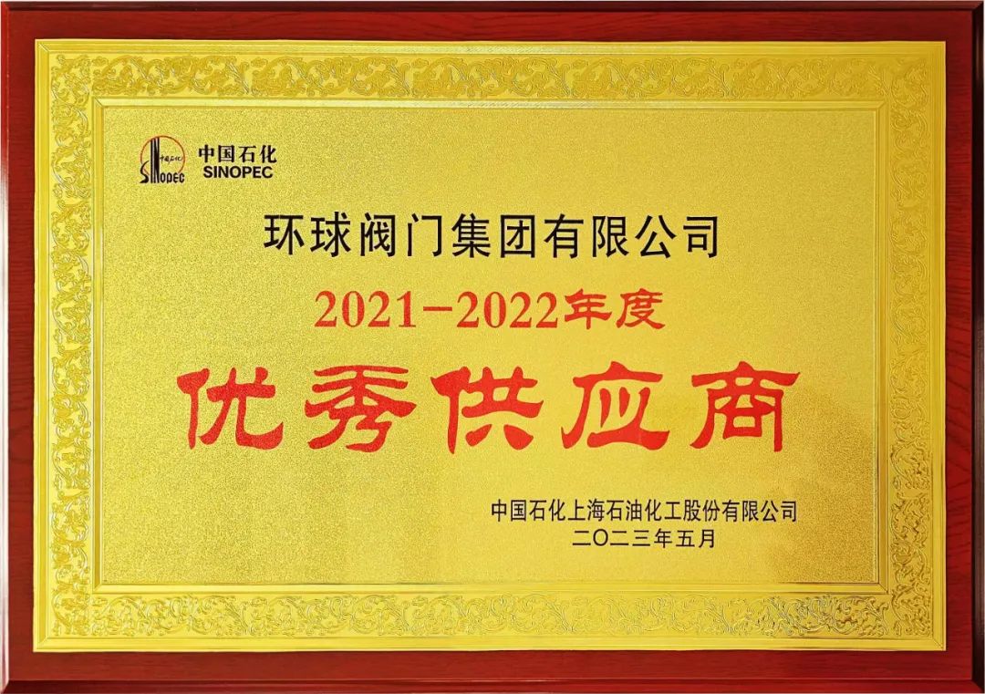 环球阀门集团荣获中石化“优秀供应商”称号