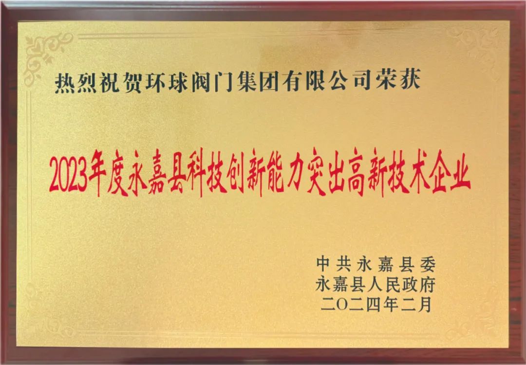 环球阀门集团获评科技创新能力突出高新技术企业