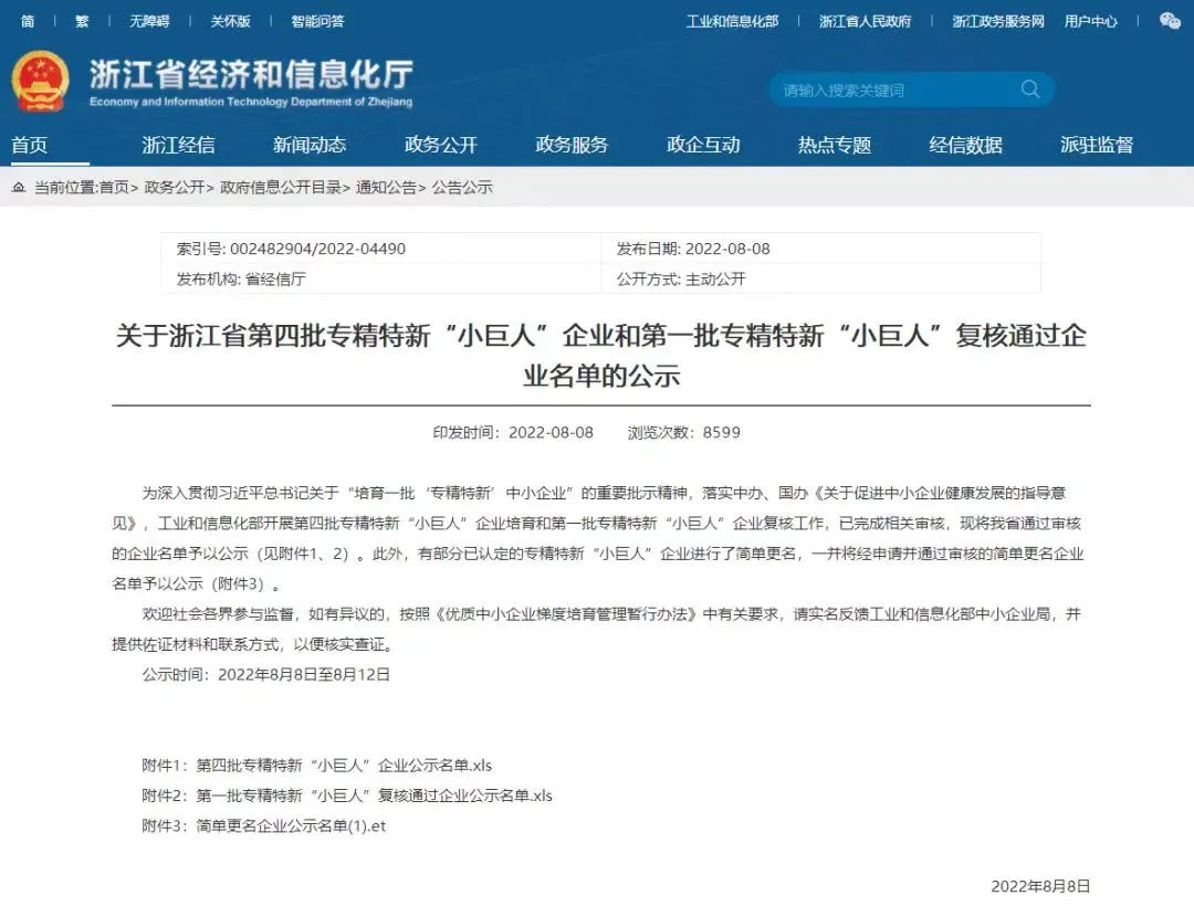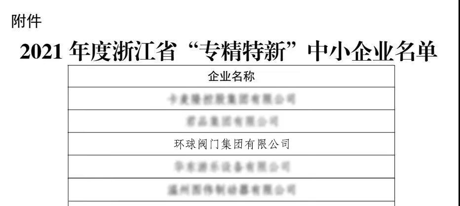 环球阀门集团入榜浙江省“专精特新”企业名单